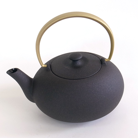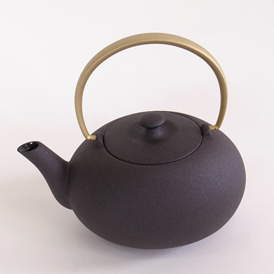 お茶に適切な温度を保つ鉄素材、付属する茶こしも茶葉からお茶が美味しく抽出されるように設計されています。表面の艶やかな漆黒色は、火に強く、サビにくい材料を使用して彩色。内側の鋳物ホーローは、じっくりと釜焼きすることで耐久性を高め、お茶の甘みと渋みが好ましいバランスで抽出されるように設計されています。