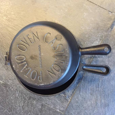 お芋をアルミホイルにくるんで入れて、あとは途中で上下をひっくり返すだけ。鋳物の遠赤効果でホクホクのさつまいものできあがり。片手鍋を上下に連結した構造になっており、外せばそれぞれお鍋として使えます。