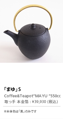 「縮緬(しぼ)肌」と呼ばれる日本独特の絹織物の肌をティーポットの表現しました。鋳物では難しい肌造りで、高度な技術を要します。