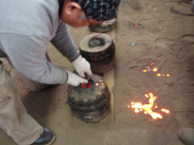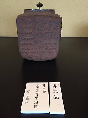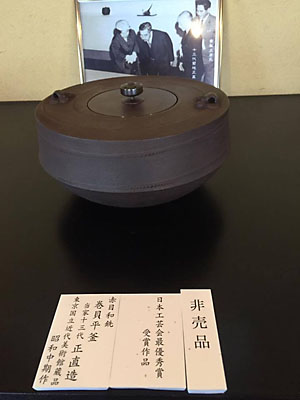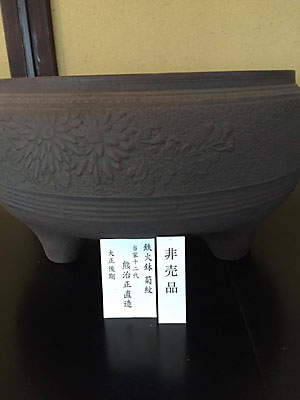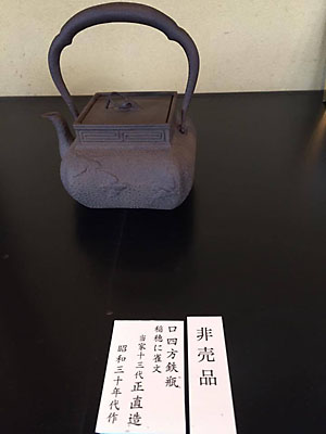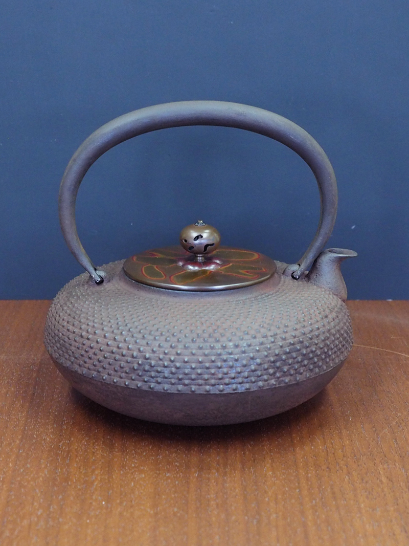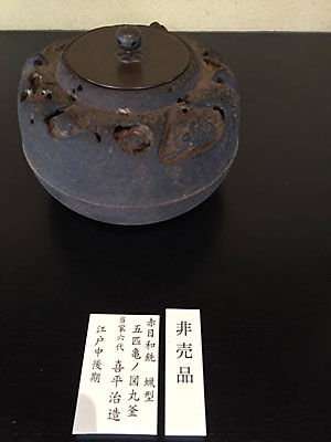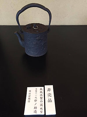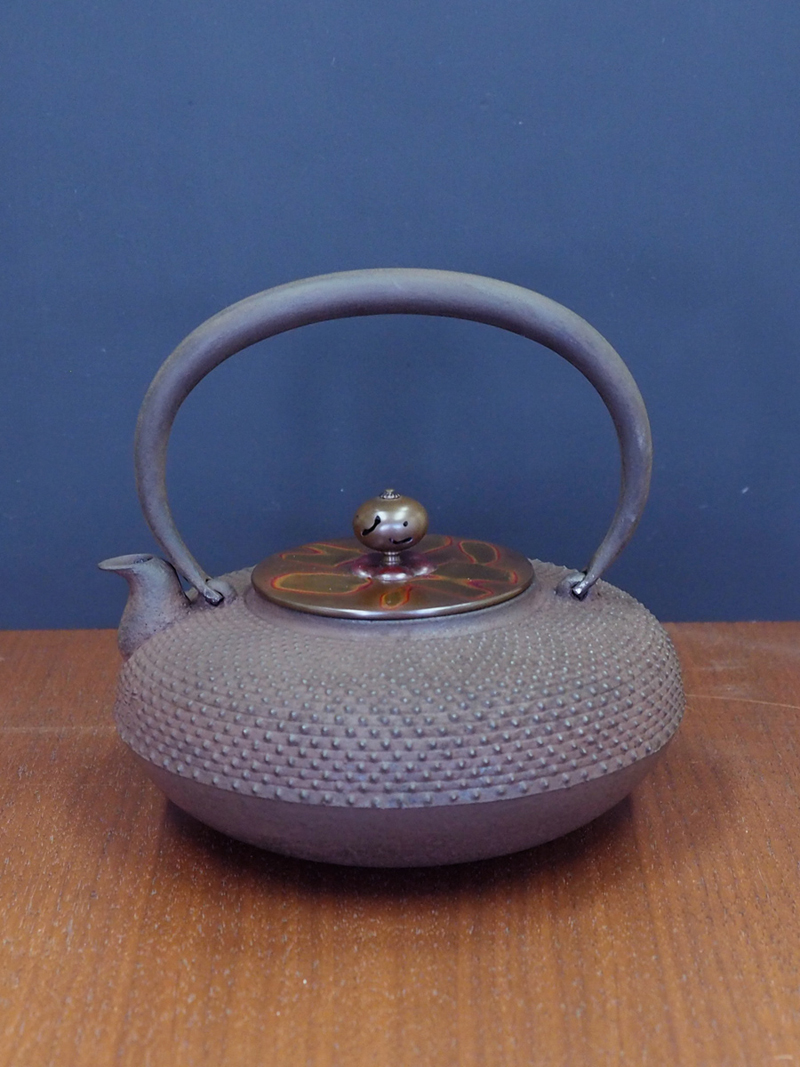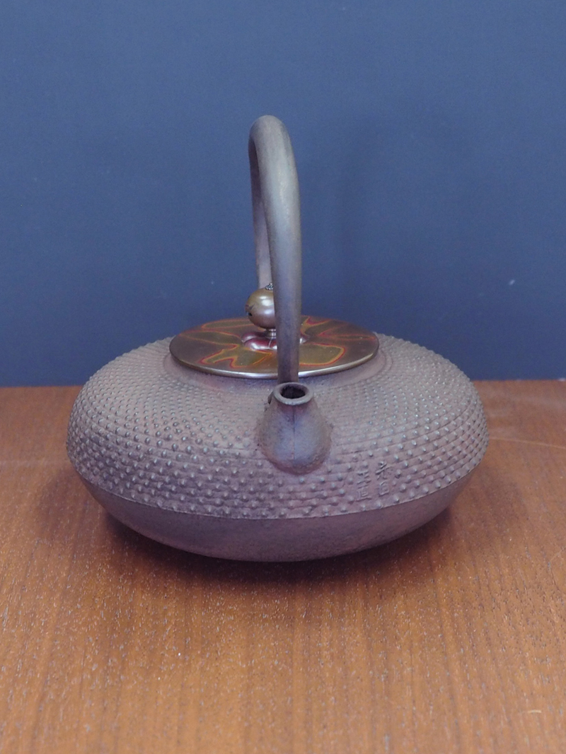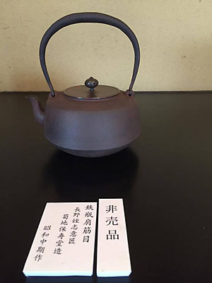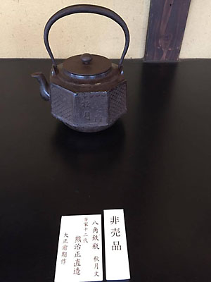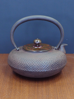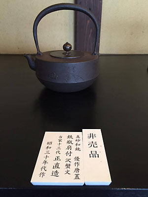 鉄瓶や茶の湯釜などの鋳物に使う和銑では2種類あり、最高品質は真砂和銑(まさごわずく)、次が赤目和銑(あかめわずく)である。 *ということで、砂鉄鉄瓶と言う鉄瓶はどんな材料を使っているのかわからないのである。砂鉄といっても下品から最高品まであるのである。 時代が下り明治時代(1868年〜)になると、産業革命で興った鉄鉱石から造る鉄の技法が日本に広まった。鉄鉱石から造られる鉄(洋銑ようずく)でつくられた鉄瓶は錆びて朽ちるのが早く、保っても100年で腐れる。しかし和銑の鉄瓶は、材質が硬く錆びも硬いので毎日使っても100年は使える。昭和初期には難しい製法の和銑鉄瓶の製法は日本で絶滅してしまった。 太平洋戦争後に、当家13代、14代、故初代長野姪志(茶の湯釜製造で初代の人間国宝—当家姻戚)らが和銑釜、鉄瓶の復興をはじめ約20有余年をかけて復興したのである。 その際、日本で最後に精錬された(日本最後のむらげが精錬した)真砂和銑材がふんだんにあるのは、その為です。日本で正当な帝国砂鉄の和銑材です。 |