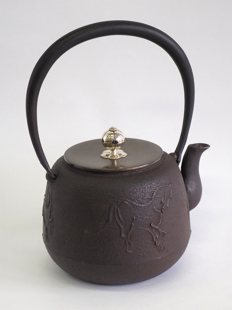 和銑真砂(わずくまさご)鉄瓶 駒ノ図 撮み/銀/南陵製 蓋/特製唐銅蓋 |