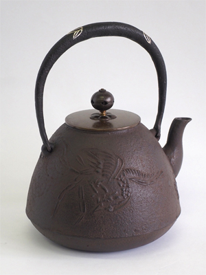 和銑真砂(わずくまさご)鉄瓶 双鳳文 取手/銀象嵌 蓋/特製唐銅蓋 |